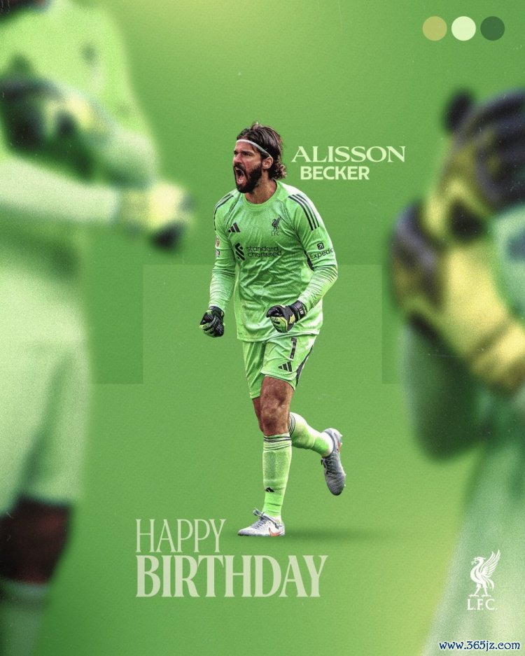 利物浦官方社媒晒出为阿利森制作的生辰海报,配文:“生辰容许,阿利森。”