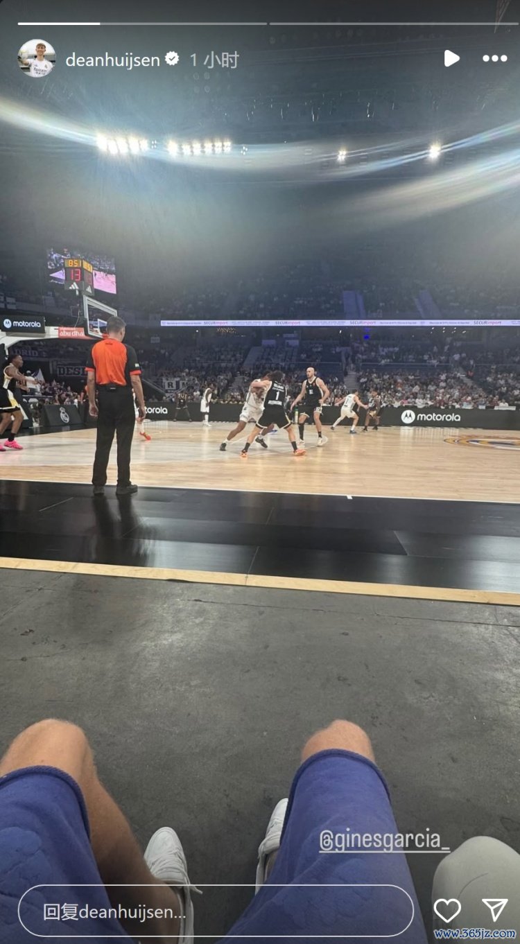 皇马男足中卫赫伊森来到球场,不雅看这场比赛,为皇马男篮加油,他在酬酢媒体上晒出不雅赛的相片。