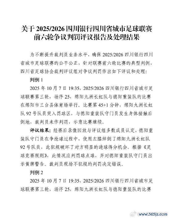 针对前6轮川超联赛的典型判例,四川省足协足协公布了前六轮争议判罚评议陈述及贬责效力,并责令作念出误判的裁判进一步擢升水平。