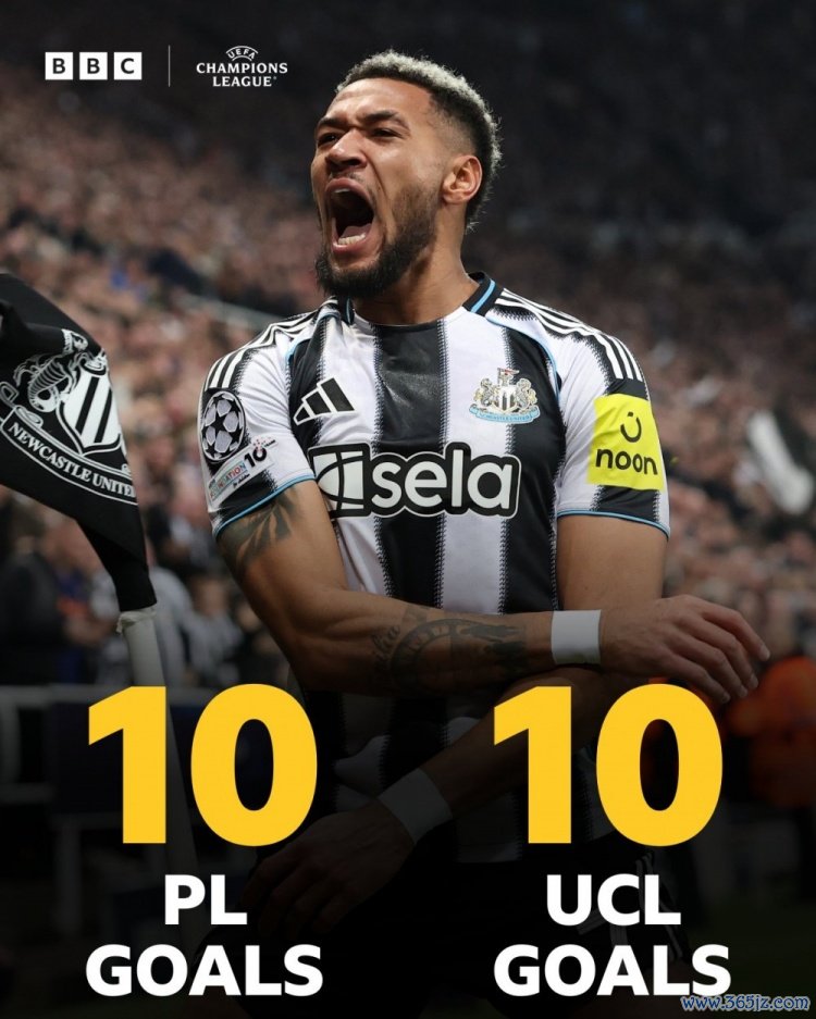 据BBC统计,纽卡本赛季欧冠4场比赛打进10球,进球数目与本赛季10场英超比赛相同。