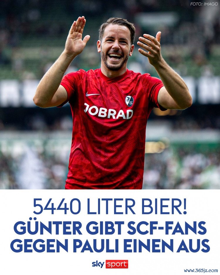 据德国天外体育报说念,为了庆祝兑现这一里程碑,冈特将在这场比赛中请弗赖堡球迷喝啤酒,他将为球迷准备5440升啤酒。