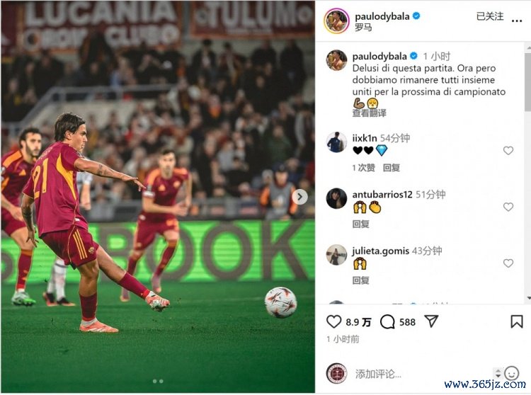 迪巴拉社媒晒出比赛像片,并写说念:“对这场比赛感到失望,但此刻咱们必须相助一致,为下一场联赛作念好准备。”