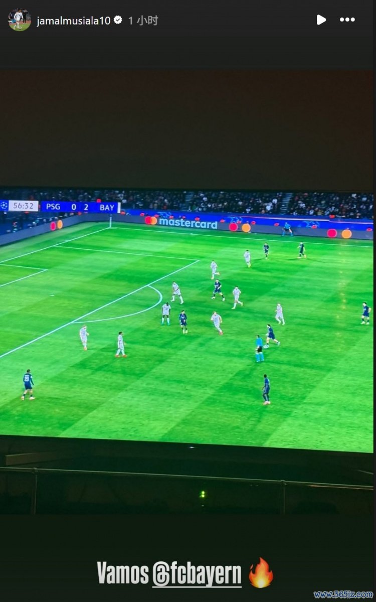 有伤在身的穆西亚拉在社媒晒落发中不雅看比赛的像片,配文写说念:“加油拜仁!”