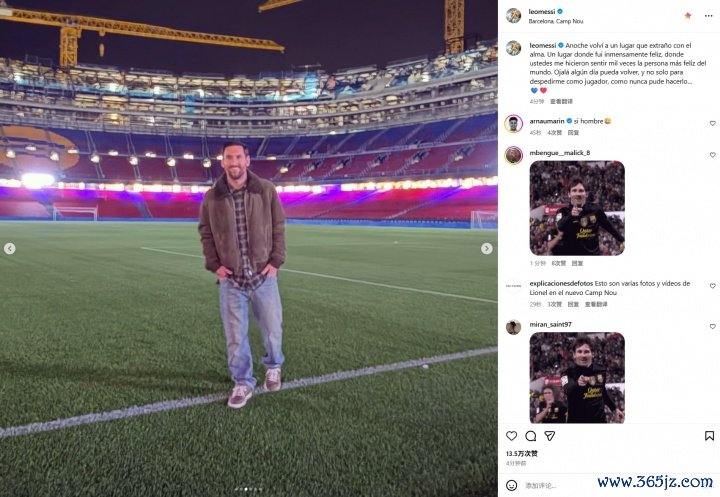 11月10日讯 梅西在个东谈主社媒晒照并发文,暗示我方参不雅了巴萨校正后的诺坎普球场。