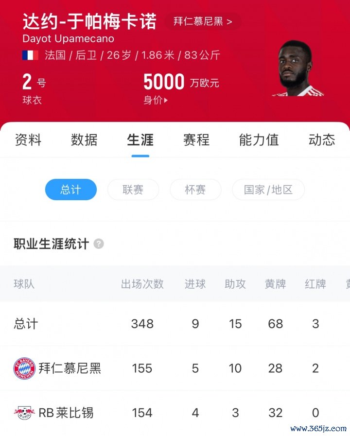 于帕现年26岁,他为拜仁共出场155次,孝敬5球10助攻。他与拜仁的公约在明夏到期,现德回身价5000万欧。