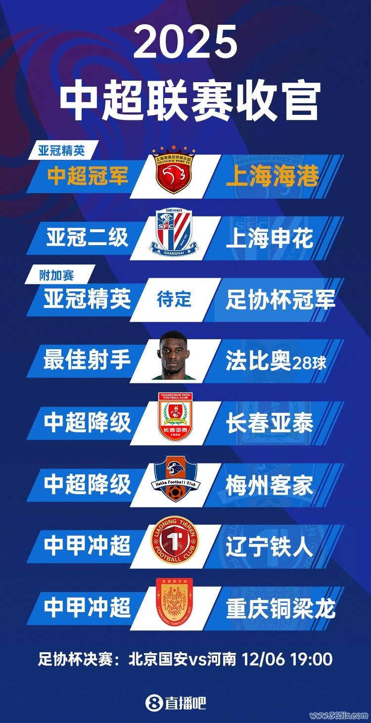 11月22日讯 2025赛季中超赛季收官,上海申花3-1客胜天津津门虎,2分之差赢得亚军。