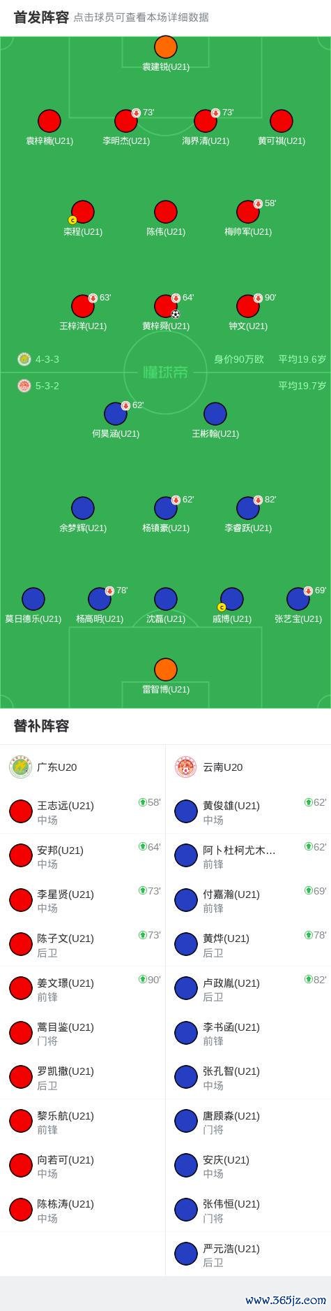 北京技术11月8日,宇宙通顺会U20男足1/4决赛张开较量,广东U20与云南U20狭路相遇。比赛中,黄梓舜攻入全场独一进球,匡助球队得到逾越。最终,广东U20以1-0投降云南U20,告捷晋级四强,将在半决赛对阵上海U20队。