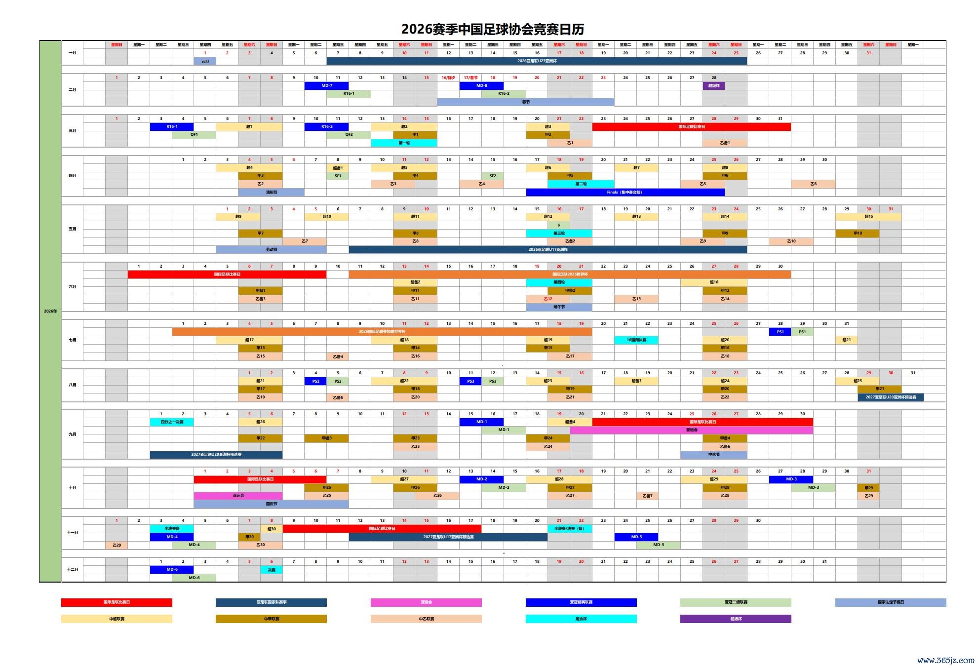 北京时候11月20日,中国足协官方公布了新赛季赛历,公告中提到,为保险U23国足进入2026亚运会,中超、中甲将于9月6日后休赛。
